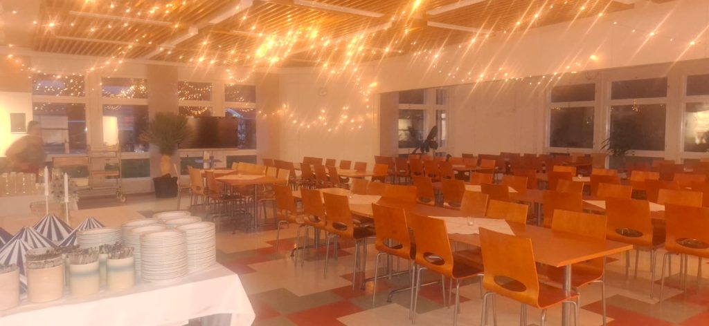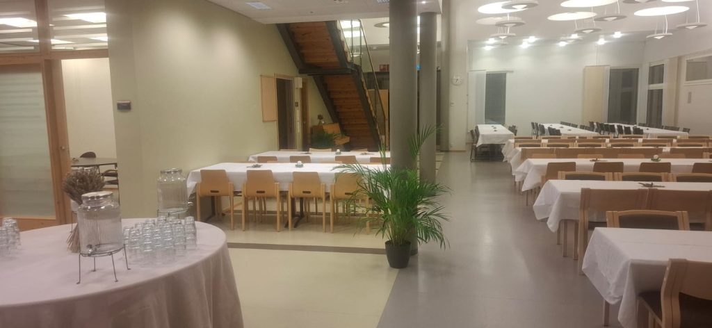 Voi varata tilan noin sadalle henkilölle tai toisen isompaa tapahtumaa varten salin, jossa parvi + erillinen neuvotteluhuone + erilinnen lisähuone esim lasten leikkihuoneeksi. Tänne menee noin 160-180 henkilöä